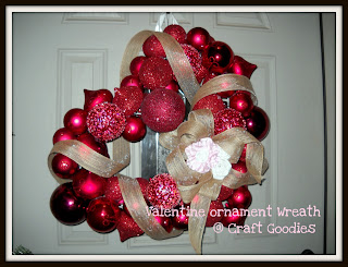 You had to have seen at least one of the many posts around blogger-land about Christmas ornament wreaths, yes? If not, this was the first {and best that I read}-he makes it easy.Well, I too think they are beautiful, but already had a wreath I really love so didn't make one. I did however find myself scooping up a ton of red ornaments on {major} clearance the other day, not because I needed them, but because they were an AMAZING deal! So what to do with a bunch of red, sparkly ornaments when Valentine's Day is approaching....