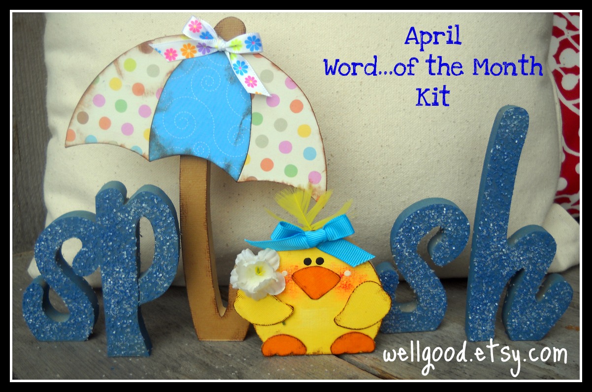 This kit comes unfinished, with all letter pieces (s,p,s,h), L/umbrella handle and top, and chick cutout, paper detail patterns, and finishing instructions.